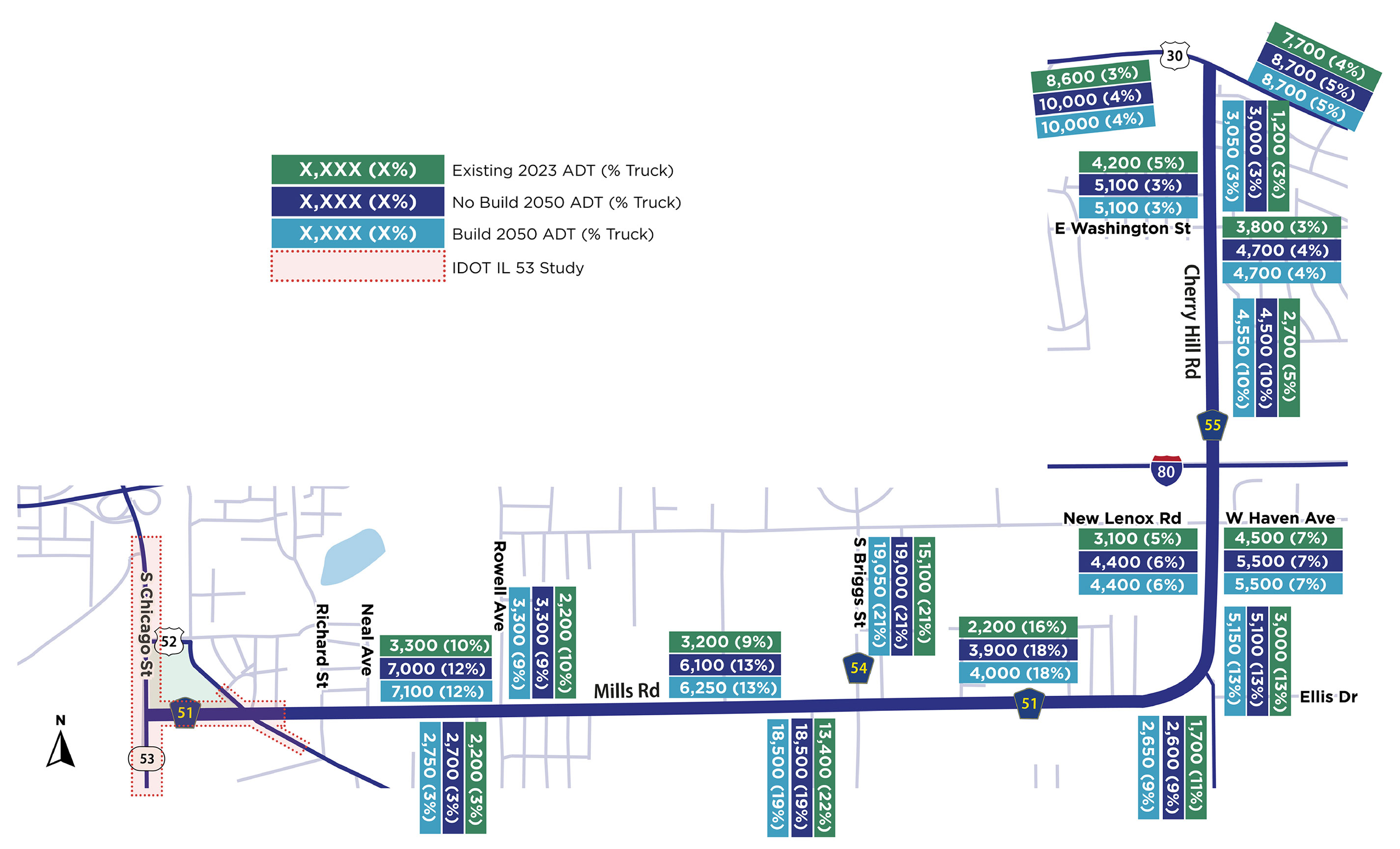 - 2050 traffic projections were provided by Chicago Metropolitan Agency for Planning (CMAP).